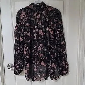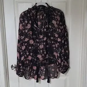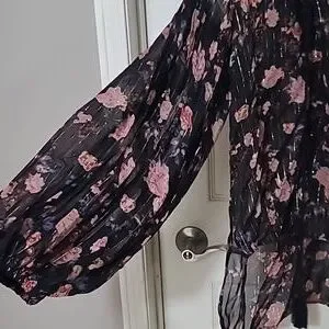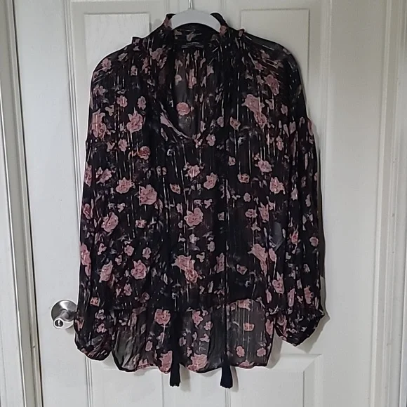 Brand New without tags! Size Small Beautiful floral details through out. Balloon sleeves high low detail tassel on the front