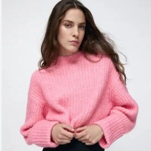 ZARA Purl Knit Soft Oversized Wool/Alpaca Blend Sweater - Pink - Size Large