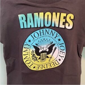 Round neck T-shirt with short sleeves. Ramones print at tront.