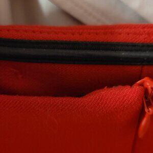 Red wool blend strapless dress from Zara.