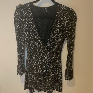 The cutest polka dot dress with a skirt underneath that wraps around and looks like a dress