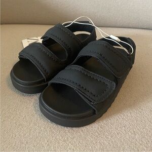 Rubberized sandals. Double adhesive strap closure and back adhesive strap. Rubber soles.