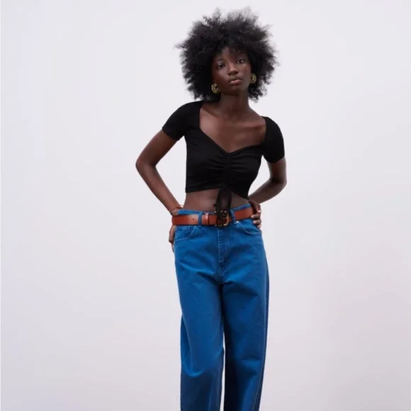 ZARA RUCHED RIBBED TOP