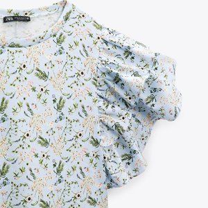 ZARA RUFFLED FLORAL PRINT MINI DRESS