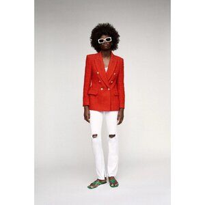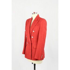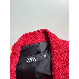 ZARA Red Boucle Tweed Double Breasted Kate Middleton Blazer Suit Jacket, Size XS