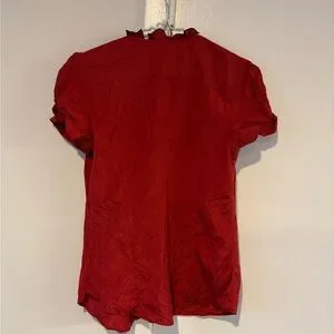 ZARA Red Silk Ruffled Blouse