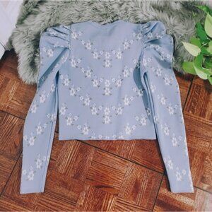 ZARA Retro Puff Shoulder Sweater With Floral Design