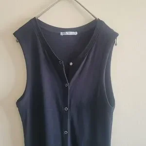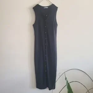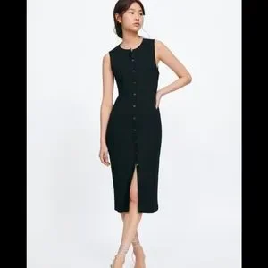 ZARA ribbed snap button front black dress. It's such a versatile dress😍 It can be worn as a vest on a t-shirt and jeans.