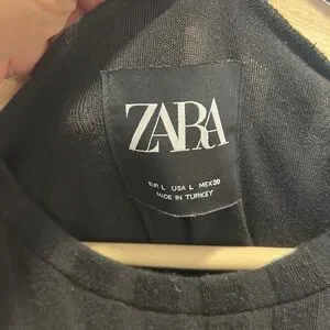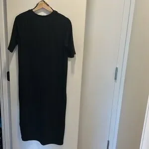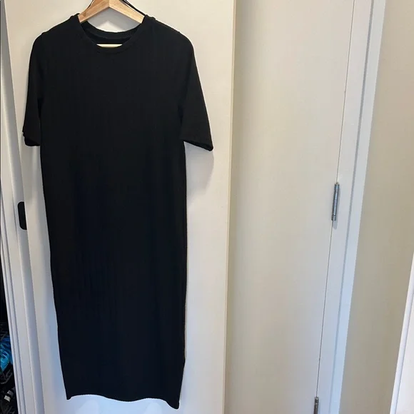 ZARA Ribbed Midi Dress Elbow-ish sleeve Black Gently used with minor pilling Size L (stretchy)