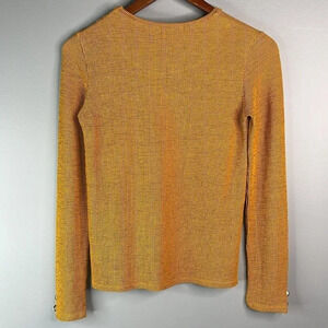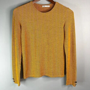 ZARA Ribbed Top Mustard Navy Ribbed Stretch Long Sleeve Textured Crew S