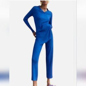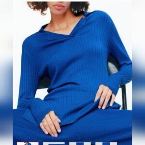 ZARA | Ribbed Tunic Top Polo Collar Royal Blue Sz M