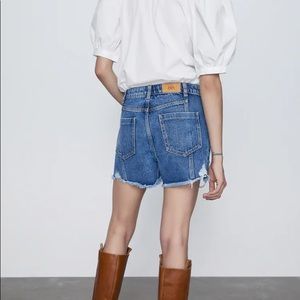 ZARA Ripped Button Jean Shorts