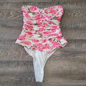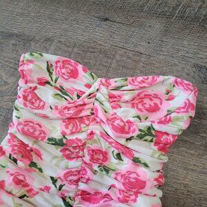 ZARA | Ruched Floral Strapless Bustier Bodysuit | Sz. XS