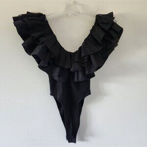 Selling ZARA | Ruffle Bodysuit Ribbed Black Sz S.