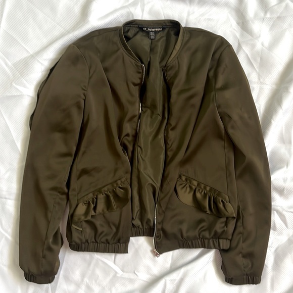 ZARA SATIN RUFFLE DETAIL BOMBER