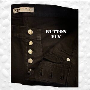 Discover your next go-to pair of jeans with these stylish ZARA stretch skinny jeans in classic black. These jeans feature a button-front design and a sleek, flattering fit for any occasion.