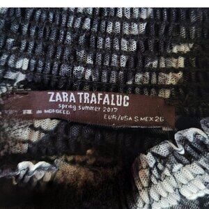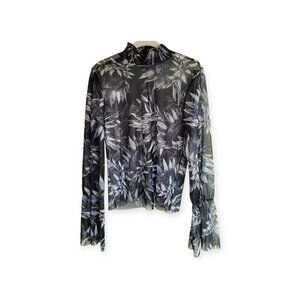ZARA Semi-Sheer Mesh Floral High Neck Bell Sleeve Top in Black & White size S