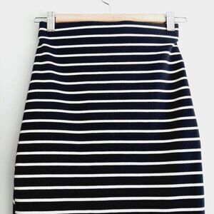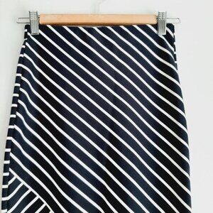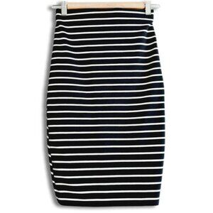 ZARA Soft Ponte Knit Pull-On Asymmetric Pencil Skirt Stripe Pattern B&W Sz S