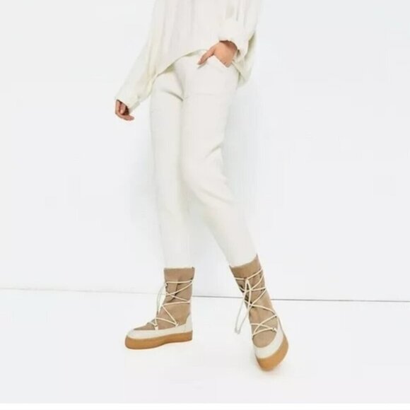 ZARA Split Suede Leather Lace up boots sz 41 Beige White sz 10 US