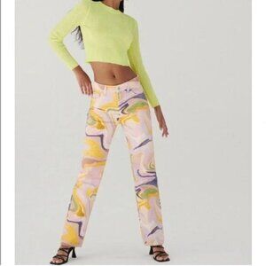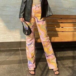 ZARA Straight Leg Abstract Swirl Print Jeans Size 2 Multicolor