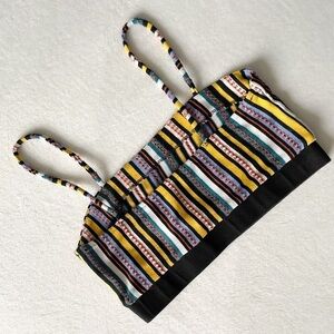 Beautiful coloured stripe pattern Knit material Elastic hem Cropped fit Spaghetti strap