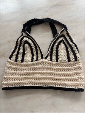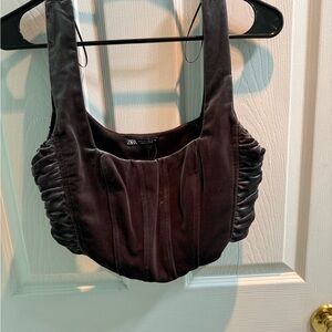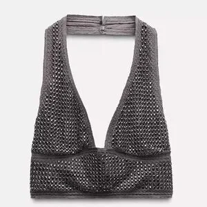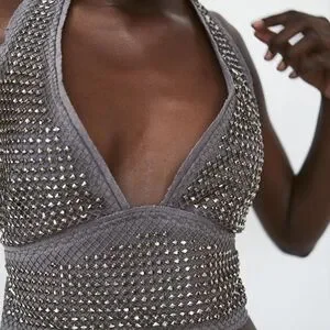 ZARA Studded Chain mail Cropped Halter Top Grey/Gunmetal Size Large - New