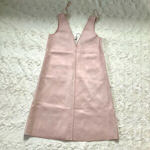 NWOT Baby pink suede-effect short sleeveless dress with v-neck & deep v-neck back. Seam detail on the front and back. Wear by itself or layered.