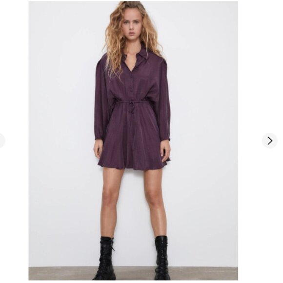 ZARA - Summer Purple/Plum Mini Flowy Dress Long Sleeve - S