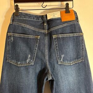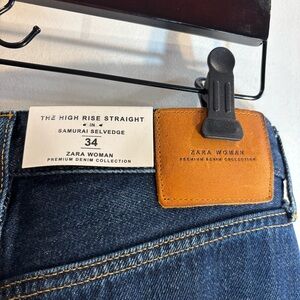 ZARA Sz 2 The High Rise Straight Samurai Selvedge Dark Wash Distressed Button Fly NEW.