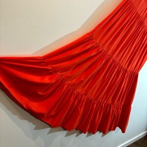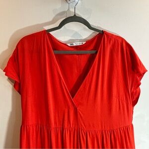 ZARA Sz L Viscose Linen Blend Tiered V-Neck Flowy Feminine Fresh Maxi Dress NEW. Lovely orange colour way. A freah pop of colour for your wardrobe.