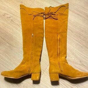 ZARA TAN SUEDE OVER THE KNEE TALL BOOTS SIZE 38