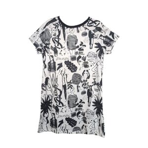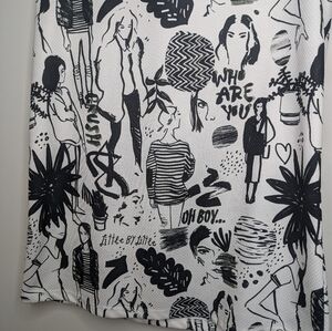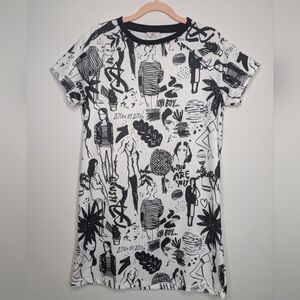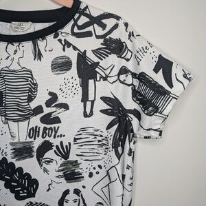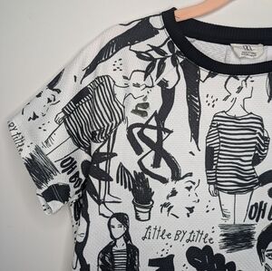 ZARA TRF Avant Garde Sketch Print Textured Sheath T-Shirt Dress in White & Black