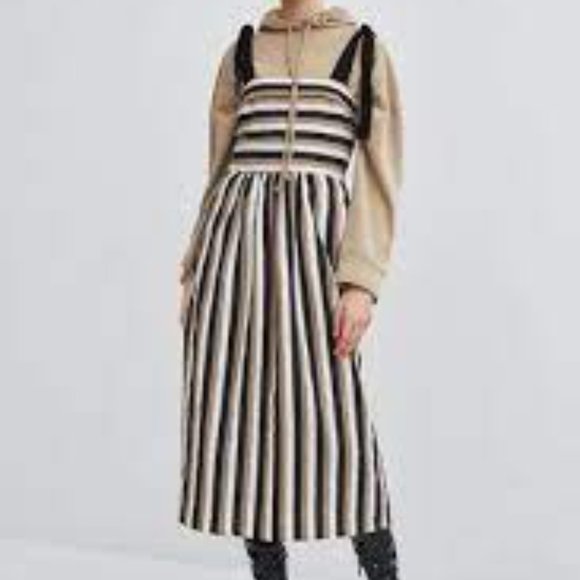 ZARA- TRF - BLACK/TAN/WHITE COTTON BOW STRAP MIDI SUNDRESS - NWOT