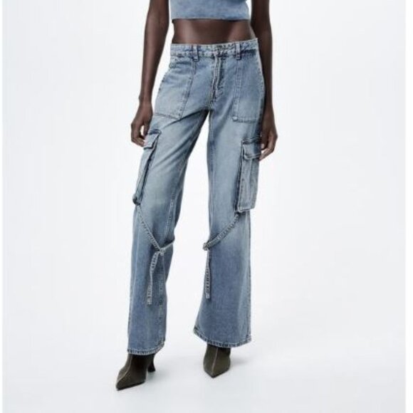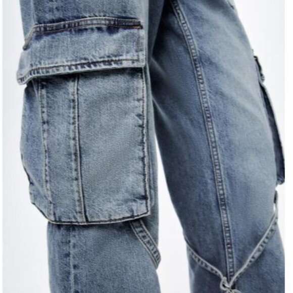 ZARA TRF Mid-Rise Belted Cargo Denim