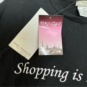 ZARA Tag NEW Shopping is my cardio Sex & the City Graphic T Shirt Crew Top Tee M