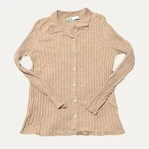 ZARA Tan long sleeve button up shirt #tan #longsleeve