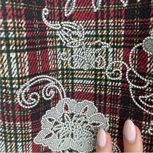 tartan pattern with faux embroidery (printed on not stitched)