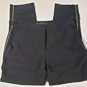 ZARA Textured Crepe Pants with Gold Side Stripe Black – S