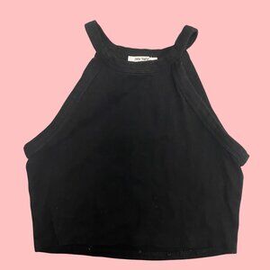 ZARA Trafaluc Black Ribbed High-Neck Crop Tank Top – Size S