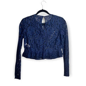 ZARA Trafaluc Navy Blue Floral Lace Peplum Croppped Long Sleeve Top