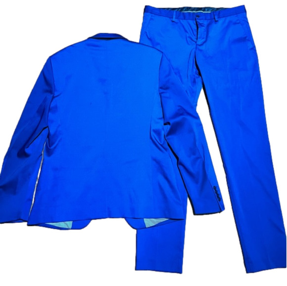 🔥 ZARA Trendy Men’s Vibrant Blue Slim Fit Modern Suit (44/38R) Dry-cleaned.