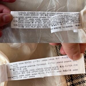 Shell: 41% polyester, 31% cotton, 15% acrylic, 7% viscose, 6% polyamide