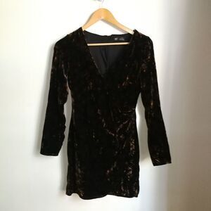 ZARA Velvet Shiny Animal Print Ruched Bodycon Sleeves Mini Dress Sz Extra-Small