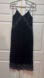 Featuring lace trims, side vents at the hem and fastening in the back with lined buttons. Dark gray color, almost black.