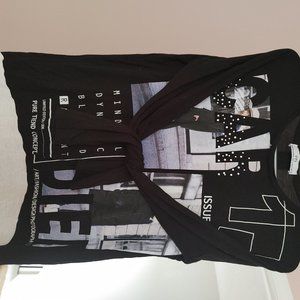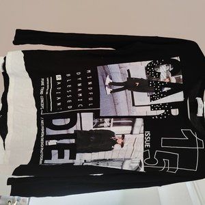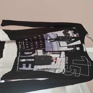 Black -white colored, Print on chest, Long sleeves. Scoop neck, Dolman shirt style