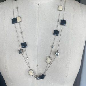 Beautiful and light as a feather - Zara wide leg graphic print pants. Feature side zipper. Color combo: tan/white/black. In excellent pre-owned condition - wardrobe from series The Bold Type. 100% polyester with the feel of silk. Bonus - necklace as shown, measures 20" can be worn single or double looped.