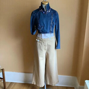 Elevate your denim game with these Zara Woman tan, wide leg, high rise, Premium Denim Collection Pants. Made from soft cotton, these pants offer both comfort and style. The wide leg design and high rise fit flatter every body type, while the cropped length adds a modern touch, allowing them to look as terrific with sneakers as they do with boots.
