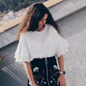 ZARA WOMAN White Round Neck with Flutter Sleeves Blouse