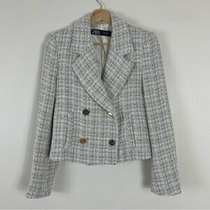 ZARA WOMEN NEW CROPPED TEXTURED BLAZER WEAVE TWEED