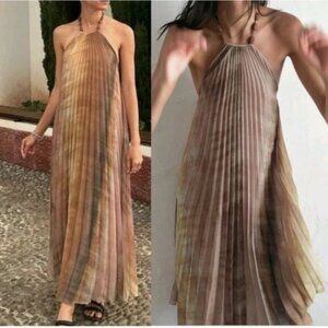ZARA WOMEN SS24 TIE DYE PLEATED HALTER DRESS MULTICOLORED